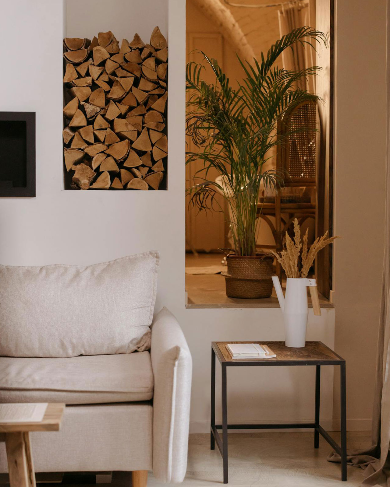 베이지, 그레이와 같은 중립 색상과 텍스처를 활용하여 차분하고 아늑한 분위기 조성